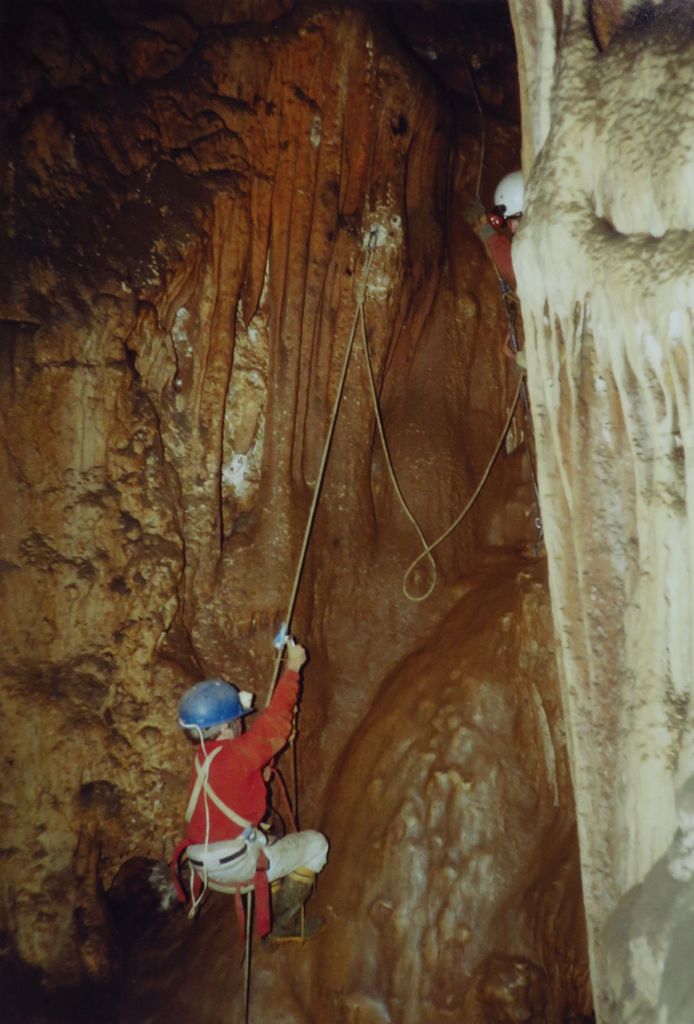 Eine Höhle in Frankreich blieb bei mir in extrem positiver Erinnerung, weil diese mitten in der Pampa in Form eines ca. 5 Meter breiten Loches beginnt. Dieses Loch hat eine schlappe Tiefe von ungefähr 70 Meter. Senkrecht. Stell dir vor, dein Kind geht alleine im Wald spielen … denn eine Absperrung gab es nicht. Wilde Natur halt. Wenn man sich in dieses Loch abseilt, gelangt man in eine unterirdische Halle, die so unglaublich groß ist, dass der Kölner Dom hineinpassen würde, zumindest ohne Türme. Durch den obigen Eingang fällt soviel Licht in die Halle, dass alles dämmrig dunkel zu erkennen ist. Beim Abseilen in diesen gigantischen Raum war ich so überwältigt, dass ich sogar meine Höhenangst vergaß. Unten angekommen sieht man Tropfsteine, Stalagmiten und Stalagtiten. Erstere wachsen von unten nach oben, zweitere von oben nach unten. Um sich das einfacher zu merken, ein super Spruch meines Vaters: „In Stalagtiten steckt Tit(t)en drinnen, und die hängen ja auch herunter …“. Aber zurück zur Höhlen-Erotik: Die Tropfsteine hatten eine Größenordnung, die unvorstellbar war, insbesondere die Stalagmiten: Manche mit dem Umfang von Mammutbäumen und dutzende Meter hoch. Ein Mensch sieht daneben winzig aus. Am Ende dieser riesigen Höhle kam die letzte mentale Überforderung: Ein kleiner separater Höhlenraum, der komplett mit weißen Kristallen geschmückt ist, die im Licht unserer Lampen wie Millionen Diamanten funkelten. In solchen Momenten ist man einfach sprachlos und könnte vor Freude weinen. Besonders weil der Weg zum Ziel herausfordernd und anstrengend war und man sich bewusst ist, dass man ein seltenes Privileg hat, da Otto Normalerverbraucher niemals hier hinkommen kann oder will. Es sei noch angemerkt, dass wir niemals Sachen aus Höhlen mitnehmen: Wer etwas abbricht oder auch nur etwas Loses einsteckt, der hat das Vertrauen der Höhlenforscher für immer verspielt. Eine Höhle ist ein Naturwunder, das auch noch Andere sehen möchten, kein Souvenirladen. Leider nahmen die Franzosen dies zu wörtlich, bohrten Jahrzehnte später einen Gang zu der Halle und bauten diese zu einer Schauhöhle um. Mein Gefühl, etwas sehr Seltenes gesehen zu haben, was nur wenige Augen je erblickten, ist seitdem erledigt. Ich war nie wieder dort.