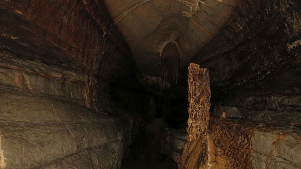 Eine andere Höhle hatte ein regelrechtes Labyrinth an Gängen. Dieses war so komplex, dass man sich wirklich verlaufen konnte und es schon Leute gegeben hat, die in ernste Schwierigkeiten gekommen waren. Bedenke dabei immer, dass es 3D-Labyrinthe sind, also auch über und unter dir Gänge verlaufen können. Eine Höhlenkarte, die es natürlich gibt (so man eine mitnimmt), kann nur 2D sein. Übereinander liegende Gänge versucht man gestrichelt zu symbolisieren. In meiner Verzweiflung, weil niemand aus meiner Gruppe Angst hatte, sich zu verlaufen, außer mir selbst, ritzte ich mit einem Stein Pfeile in die Wände. Wo dies nicht möglich war, zum Beispiel wegen zu hartem Gestein, legte ich Steine als Pfeile aus. Wenn beides nicht möglich war, weil mir die Steine ausgegangen waren, betete ich.
