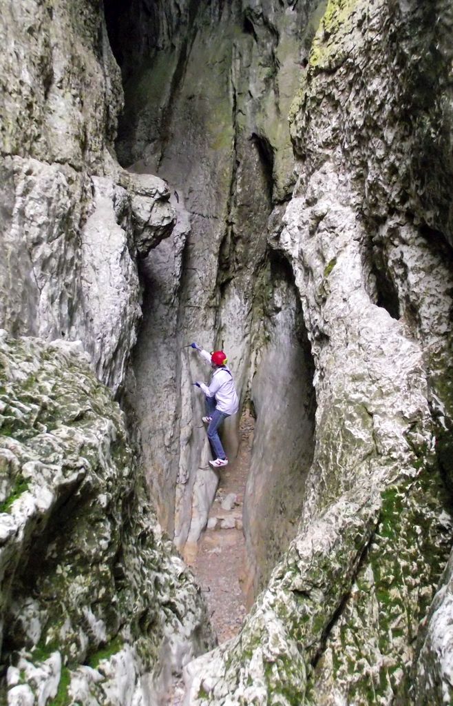 Einmal ließ ich mich an einem Seil ungefähr 20 Meter in die Tiefe ab. Mein Vater rief zu mir herunter, ich solle bereits weitergehen. Ich schaute mich um, doch ich war in einer Sackgasse: Das Seil hing in einem kreisrunden Schacht mit vielleicht 5 Metern Durchmesser, der am Boden endete. An einer Stelle sah ich ein großes Mauseloch, was so aussah, als würde maximal eine fette Katze hindurchpassen. Ich rief meinem Vater zu, dass hier Ende wäre, doch er seilte sich zu mir ab, hielt schnurstracks auf das Mauseloch zu und meinte trocken: „Da geht´s doch weiter!“. Ehe ich mich versah, guckten nur noch seine Schuhe heraus, während sein gesamter Körper an den Wänden entlang schrammte, denn selbst robbend kam man dort kaum hindurch. Ich entschied, meiner Klaustrophobie nachzugeben und ließ ihn alleine ziehen. Irgendwo steckenbleiben ist schon scheiße, aber tief unter der Erde steckenbleiben, das war mein persönlicher Albtraum.