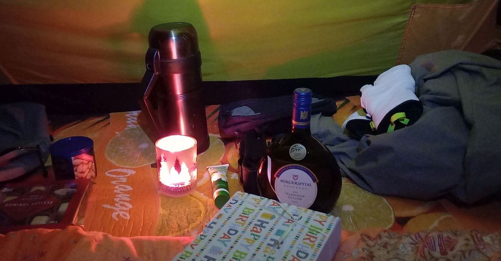 Dadurch war Innen einfach alles nass. Zuerst die Decke, später der Schlafsack. Happy birthday! Aber ich wollte es ja so. Geplant, durchgeführt und für nicht wiederholenswert befunden.