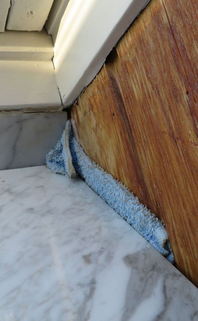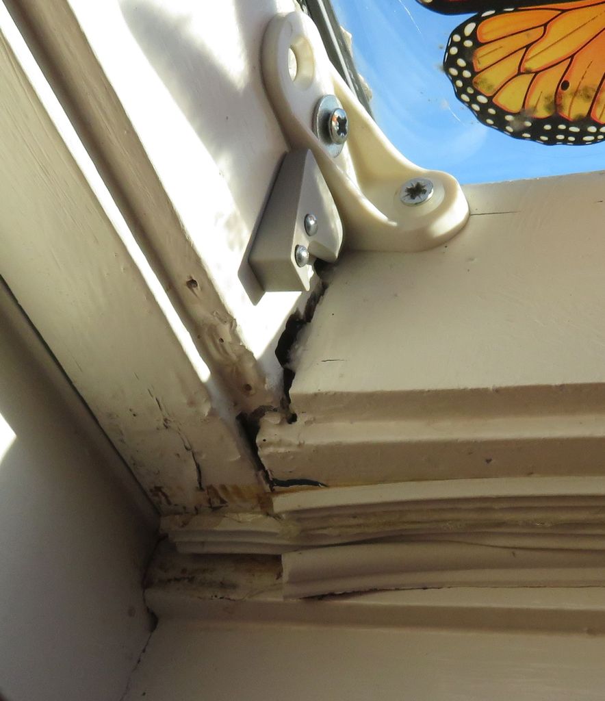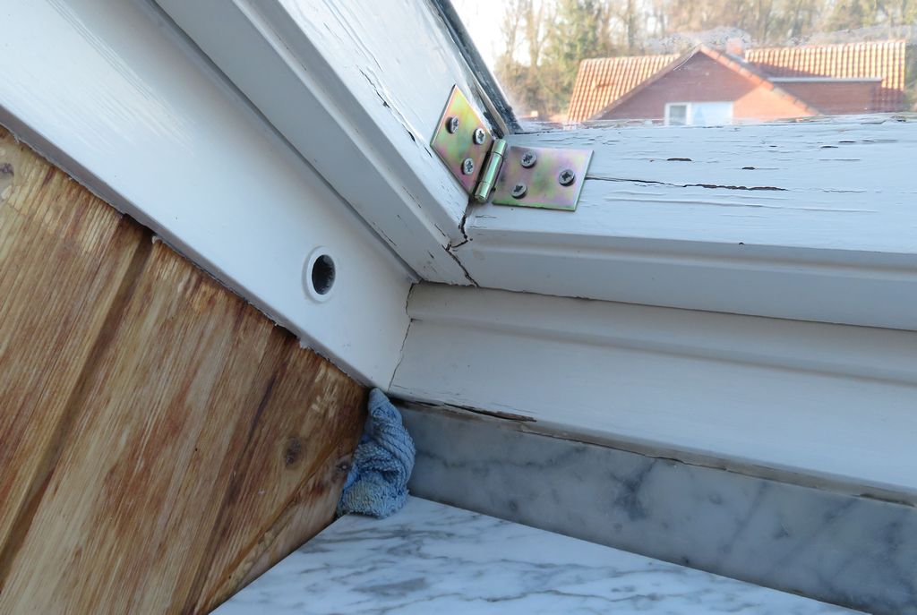 Doch die Fenster hatten noch ganz andere Features zu bieten: Sie waren nie getauscht worden und der Holzrahmen längst morsch. Immer wieder lief Wasser bei Regen oder Schnee durch die Fensterrahmen in meine Wohnung. Bis ich beherzt zur Bohrmaschine griff, Wasserabläufe in die Rahmen bohrte und alle auffälligen Stellen mit Bauschaum und Tesaband abdichtete. Doch findige Fenster finden einen Weg. Das Holz war bereits so morsch, dass mir bei 2 Fenstern das komplette Fensterglas nach unten rutschte, weil der untere Rahmen abzubrechen begann. Sowas passiert natürlich im tiefsten Winter, wenn man kurz lüften will und sich die Fenster danach nicht mehr schließen lassen. Erst dachte ich, das Holz hätte sich wegen der Kälte verzogen, aber es war schlimmer. Ein Hammer und Winkel für die Rahmen halfen, die Glasscheibe wieder in Position zu bekommen; auch wenn es herausfordernd war, in dem morschen Holz überhaupt noch etwas zu befestigen. Danach ließen sich die Fenster wieder problemfrei(er) schließen.