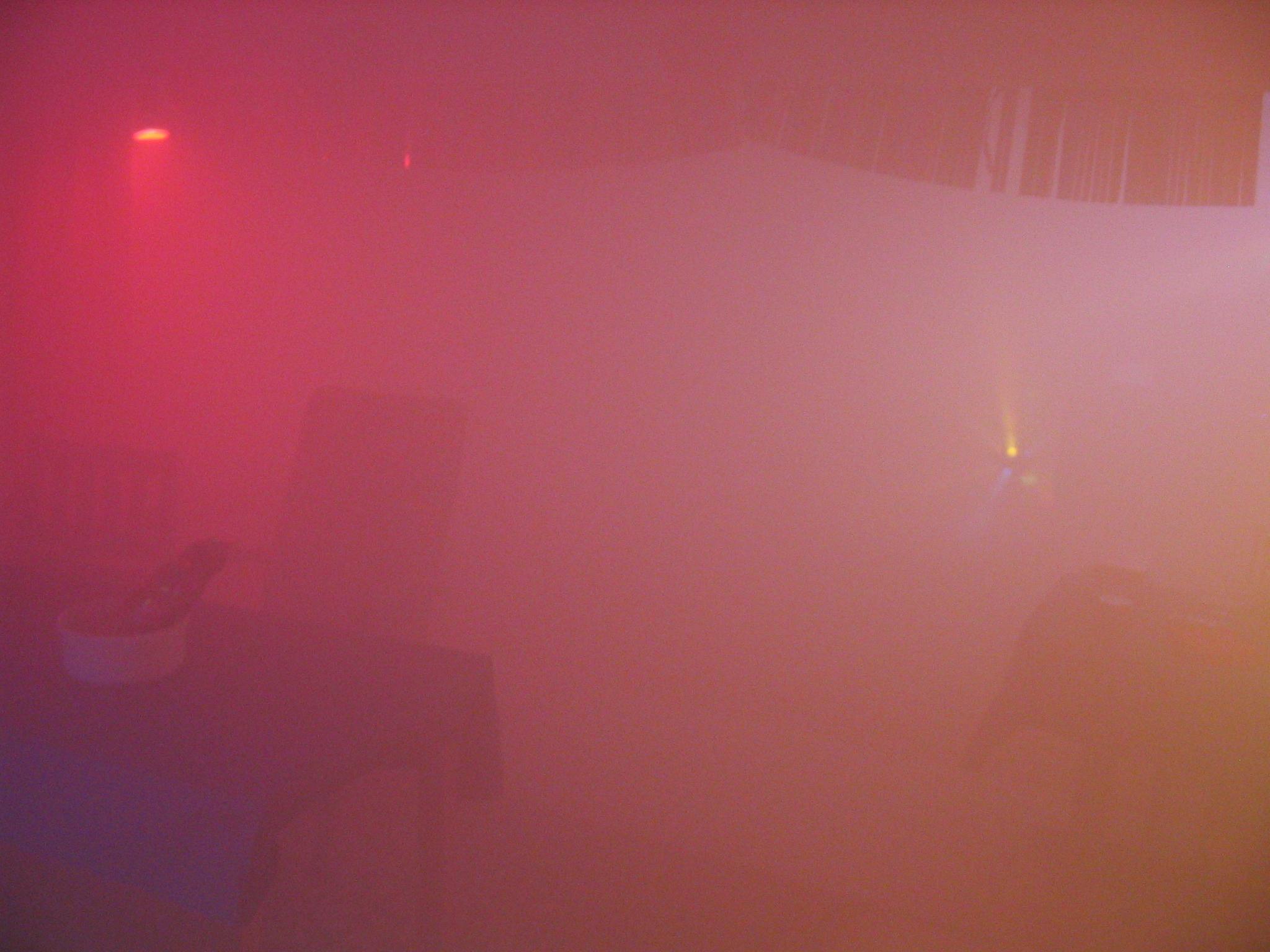 Das änderte sich, als die erste wegen Überlastung starb und ich während der zweiten entdeckte, dass teurer Nebel deutlich dichter ist. Fortan wurden die Partys zu Lightshows und es zum größten Vergnügen einiger Gäste zu testen, wieviel Nebel denn so in einen Raum passt. Antwort: Soviel, bis man seine eigene Hand nicht mehr sieht. Direkt vor den Augen. Hat man diesen Zustand erstmal erreicht, wird jede Party zum skurilen Fest: Mangelns Orientierung kriechen die Gäste über den Boden, während Tanzen nur noch im Sitzen geht. Man sieht seinen Gegenüber beim Quatschen nicht mehr, aber hört die Stimme aus dem Off. Lichtstrahlen jagen durch ein Meer aus weißem Rauch, ohne dass man ihren Ursprung erahnen kann. Meistens wurde es im Partyraum bei dieser Wetterlage immer ruhiger, weil sich die Gäste nach und nach gen Ausgang tasteten und dann als Pulk auf der Kellertreppe versammelten, bis die Spaßvögel drinnen genug hatten. Wir konnten davon ja nichts sehen!